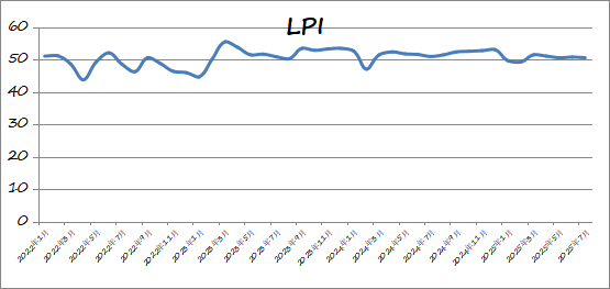 2025年7月份中国物流景气指数为50.5%,较上月回落0.3个百分点发表时间:2025-08-05 16:20来源:中国物流与采购联合会 中国物流与采购联合会发布的2025年7月份中国物流业景气指数为50.5%,环比回落0.3个百分点。本月,尽管有局地洪涝和连续高温等不利天气因素影响,但全国物流需求总量大、增势稳,指数反映出总需求保持扩张,企业内生动力较强,物流供需保持适配增长。分项指数中业务总量指数、新订单指数、库存周转次数指数、资金周转率指数、物流服务价格指数、固定资产投资完成额指数、从业人员指数和业务活动预期指数处于50%以上扩张区间。